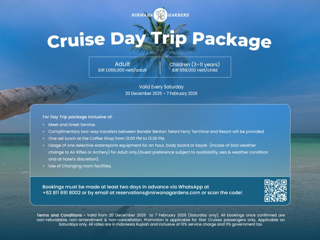 This package is available every Saturday from 20 December 2025 to 7 February 2026, making it an ideal and hassle-free option for cruise travelers seeking a memorable Bintan experience.