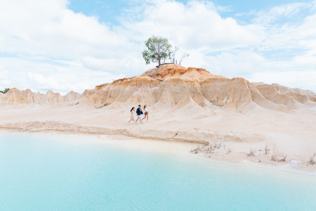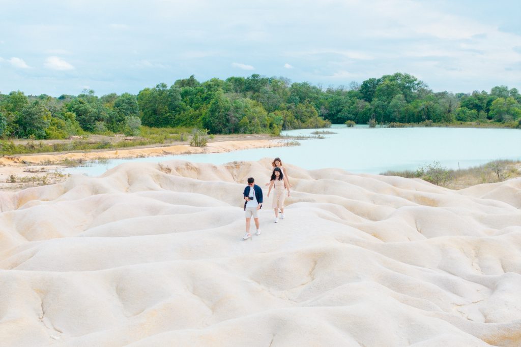 Sand Dunes and Blue Lakes Bintan is known for its wide stretches of soft white sand and calm lakes with a striking blue color. The contrast between the dunes and the water creates a beautiful scene that is perfect for photography and quiet moments in nature. This area was once an active sand mining site. After mining activities stopped, nature slowly transformed the land into the scenic attraction we see today, now managed by local villagers.