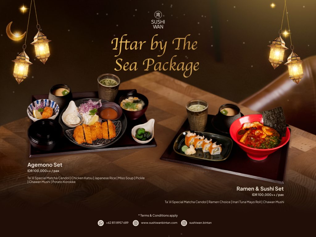 Celebrate Ramadan with a unique seaside dining experience at Sushi Wan – Plaza Lagoi, located in Bintan Resorts. Iftar by The Sea brings together the cozy atmosphere of the oceanfront and your favorite Japanese dishes, making your iftar gathering even more special.