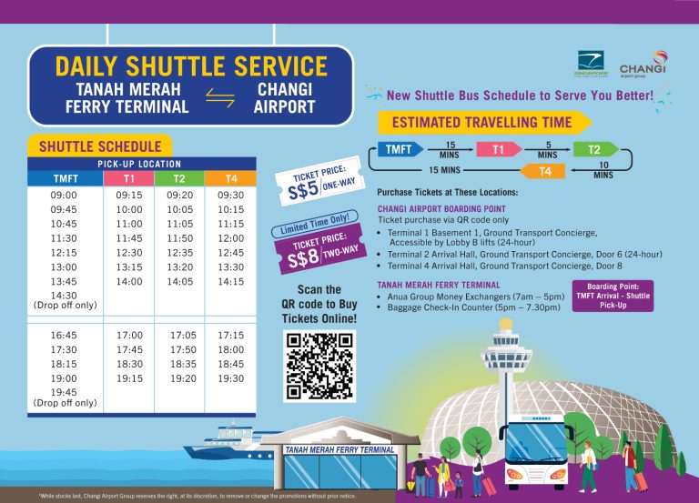 From 13 Oct 2025, enjoy daily shuttle service between Changi Airport & Tanah Merah Ferry Terminal with new timings, $8 round-trip promo & free WiFi.